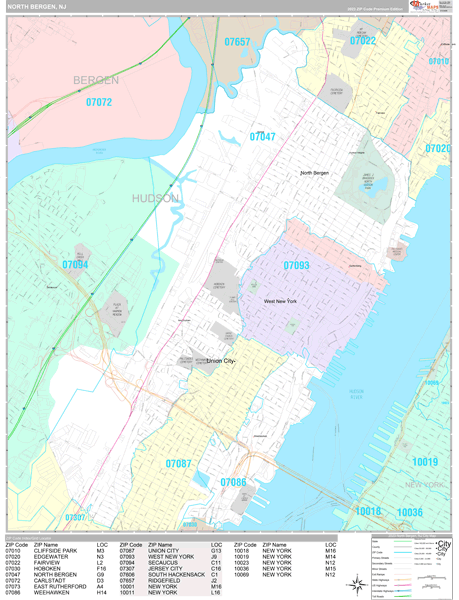 North Bergen New Jersey 5 Digit Zip Code Maps Basic